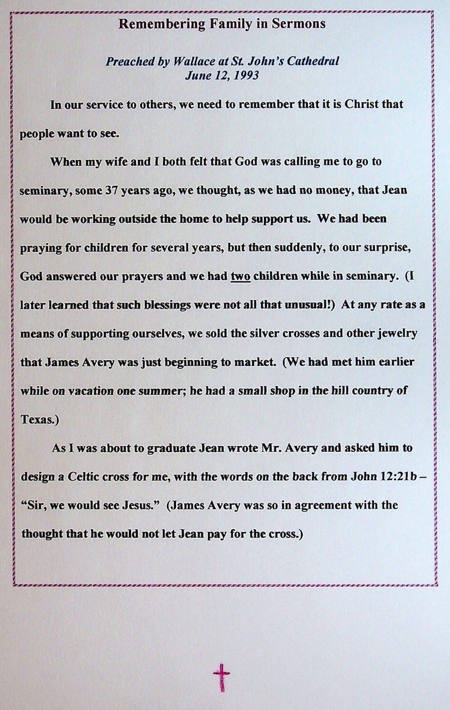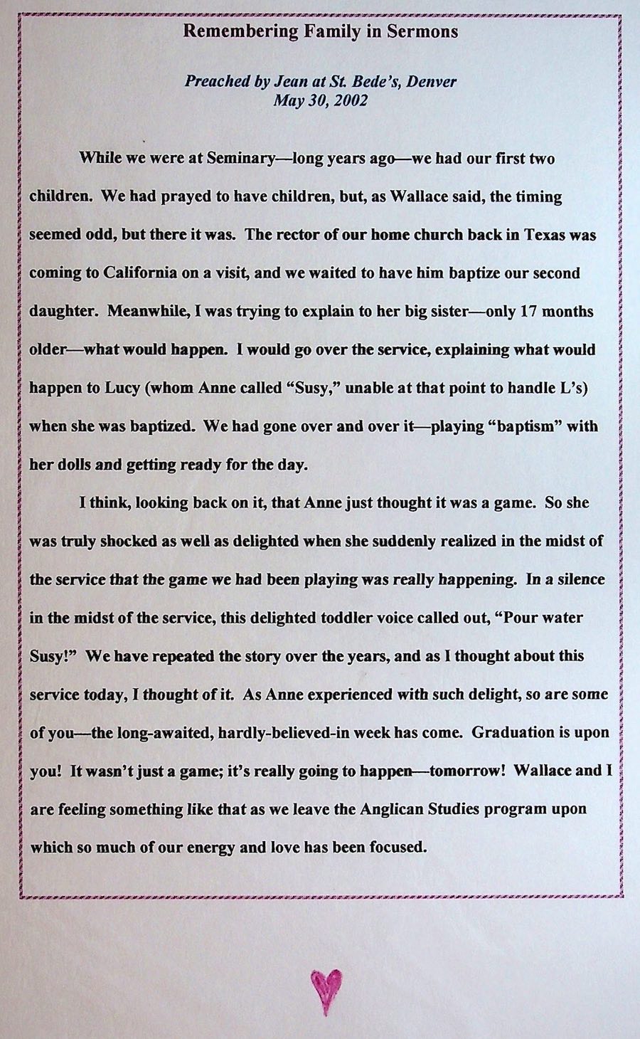 This book was presented to Jean and Wallace in Switzerland on August 12, 2003,
