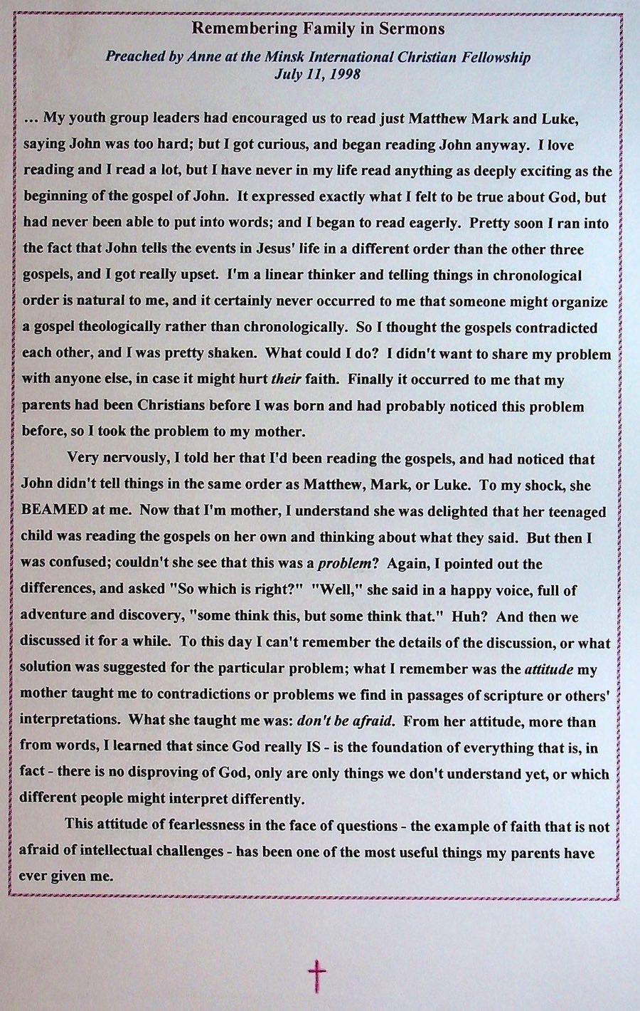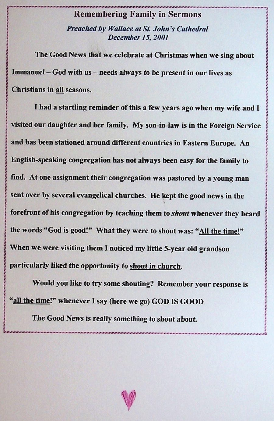 Each member of their family created unique, personal pages for them.